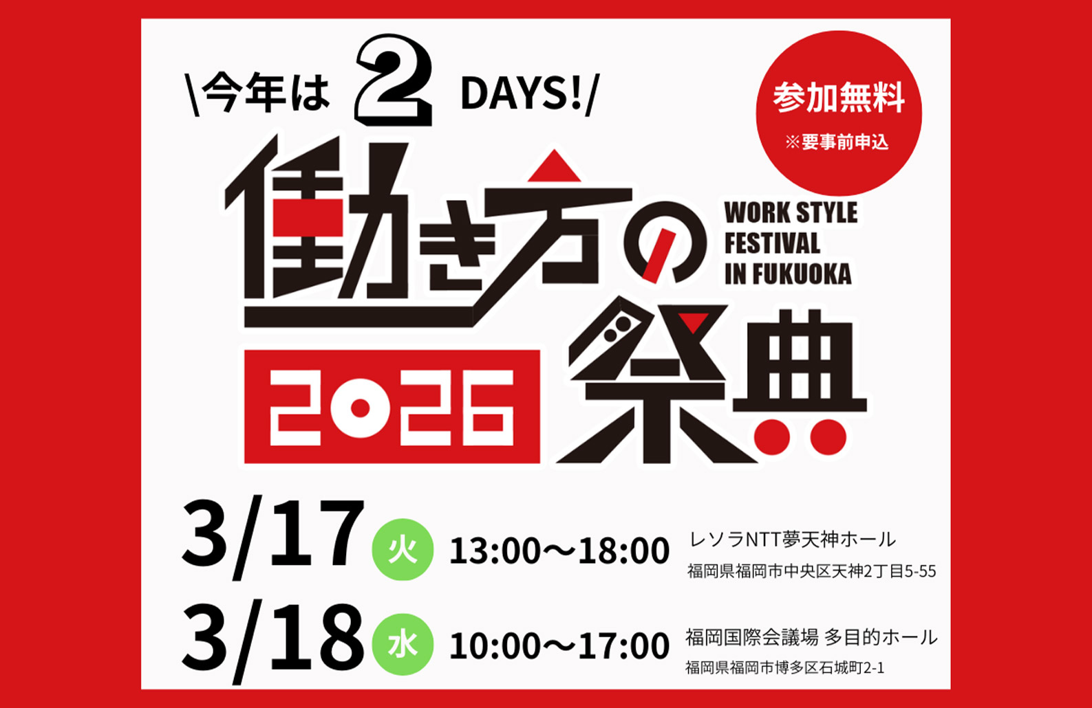 【福岡県】「働き方の祭典2026― 働く未来を、共に考え、共に創る ―」に出展します