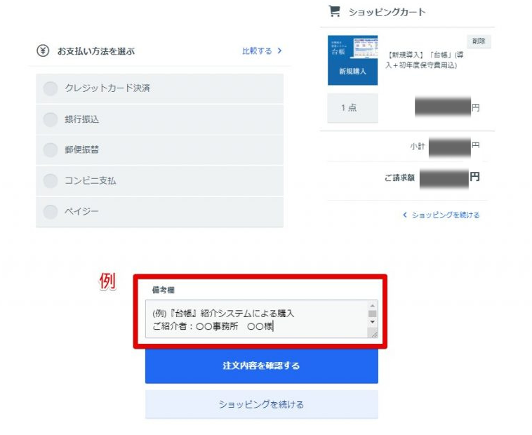 『台帳』をご注文の際に、