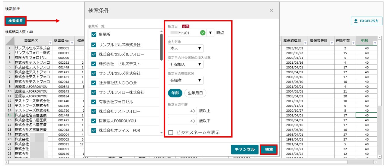 従業員検索抽出機能で、対象確認が可能に